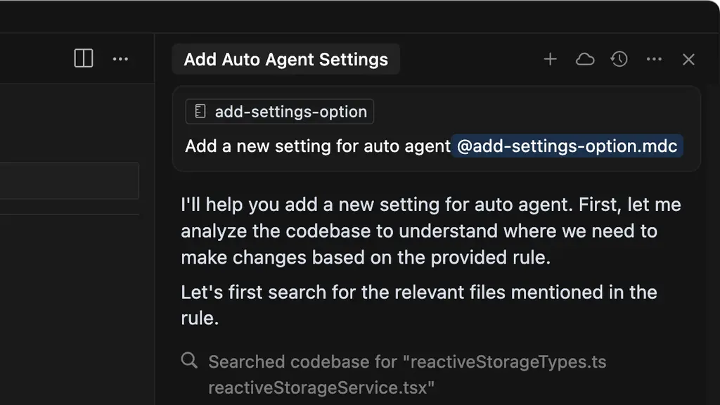 如果 alwaysApply 为 true,则该 Rule 会应用于每个聊天会话。否则,将把该 Rule 的描述提供给 Cursor Agent,由其决定是否需要应用该 Rule。